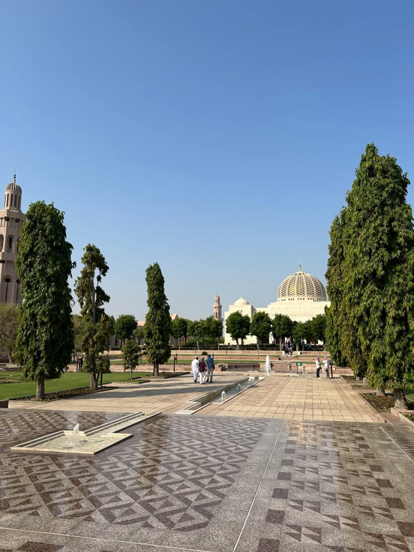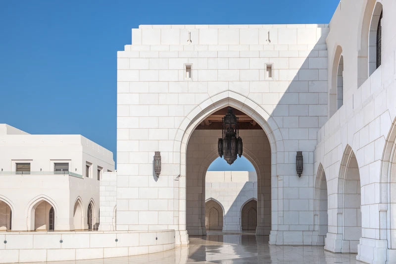 Великая мечеть султана Кабуса. Вы увидите мраморные залы, ручную роспись, изысканные витражи и знаменитый персидский ковёр — один из крупнейших в мире.