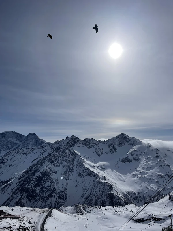 Путешествие начнём с подъёма по канатной дороге на гору Чегет. По пути вы увидите Эльбрус, знаменитый ледник «Семёрка», Донгуз-Орунбаши и вершины Когутаи.