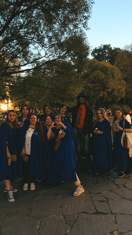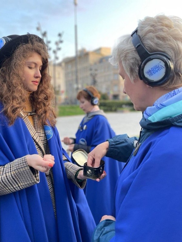 Сначала — вы облачитесь в синие мантии, получите наушники, в которых вы будете слышать спектакль. И в сопровождении Часовщика и его помощников отправитесь в путь!