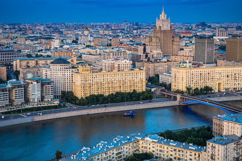 Киевская площадь — Новодевичий монастырь — стадион «Лужники» — церковь Св. Троицы на Воробьёвых горах — МГУ — Нескучный сад — Президиум Российской академии наук — церковь Св. Николая Чудотворца в Хамовниках — Центральный парк культуры и отдыха им. А.М. Горького — памятник Петру I — Кремль — парк «Зарядье».