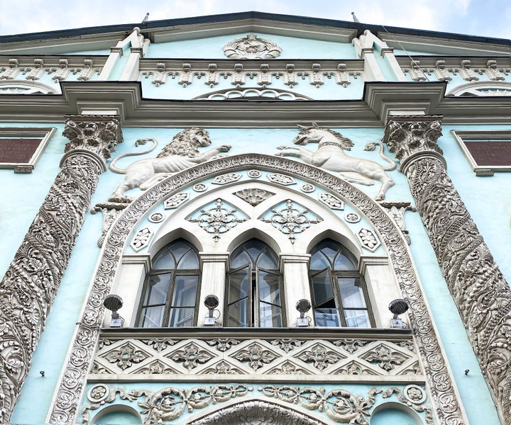 - Московская биржа, украшенная античными богами и фантастическими существами
