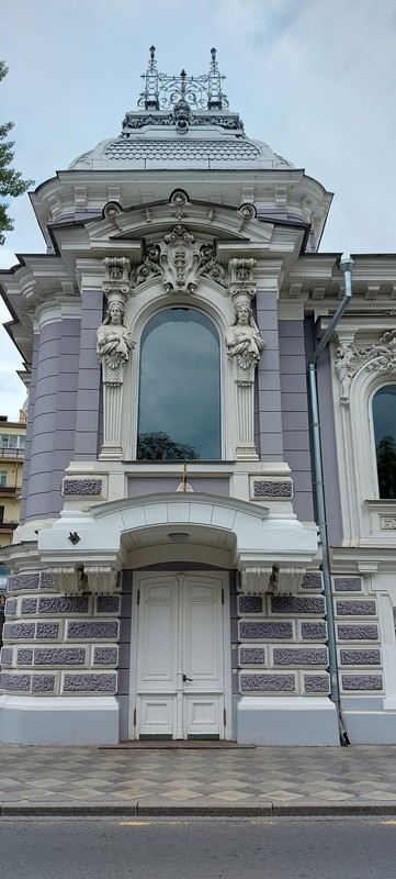 - Дом Коробковой — аметистовый особняк, украшенный женскими масками, в которых угадываются черты владелицы